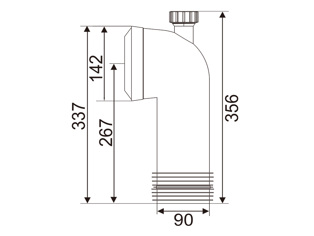 Kims' 4" X 10"(H) 90 Deg Bend W.C. Pan Connector with Boss