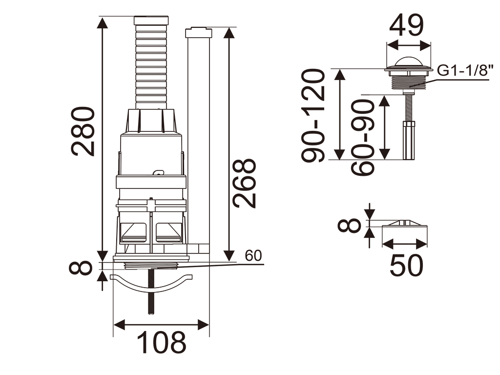 2" Top Single Push Flush Valve