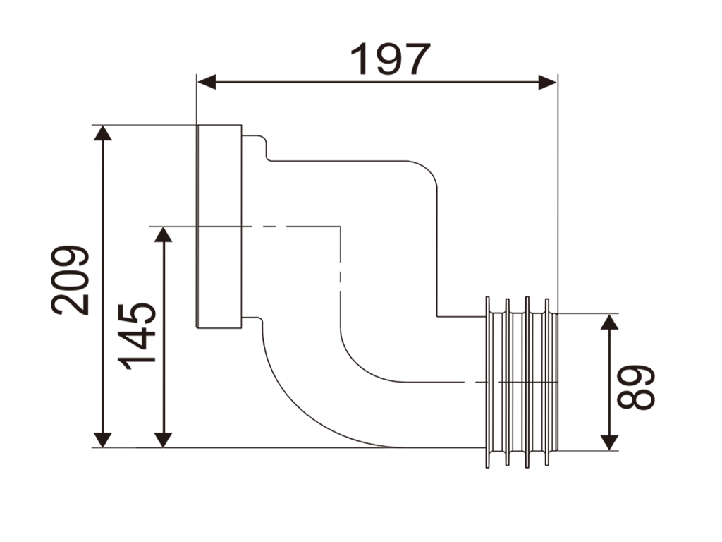 Kims' 4" X 10"(H) 90 Deg Bend W.C. Pan Connector with Boss