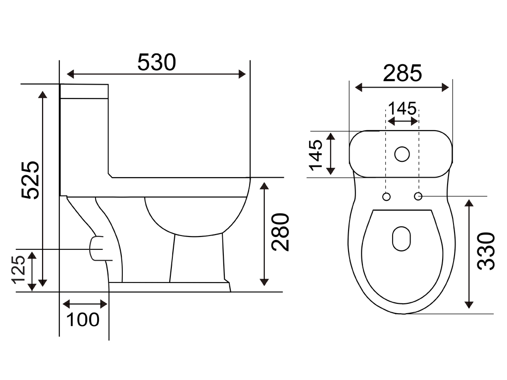 Vitreous China Close-Couple Toilet With Tank Fittings