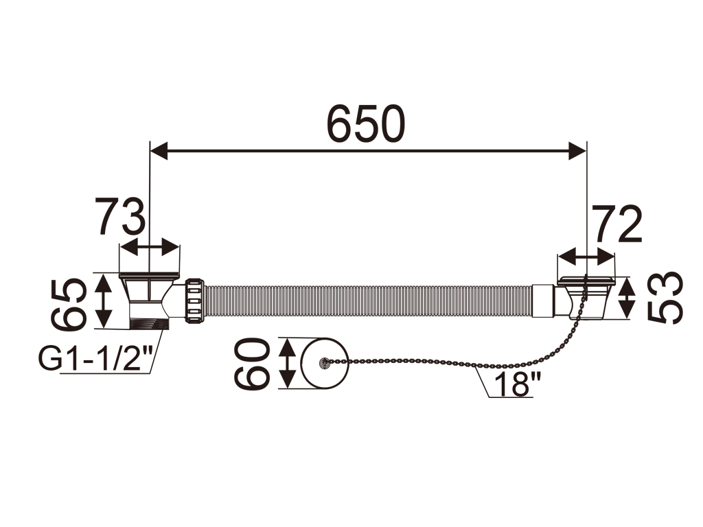 1-1/2" Bath Waste 18"(L) S/S Chain with Plastic Plug & Overflow