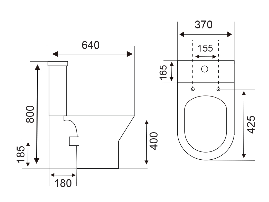 Vitreous China Close-Couple Toilet With Tank Fittings
