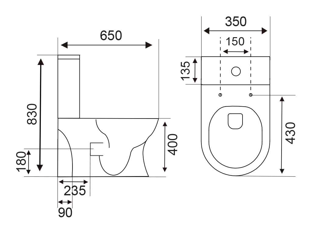 6689 Vitreous China Close-Coupled Water Closet (Universal Trap)